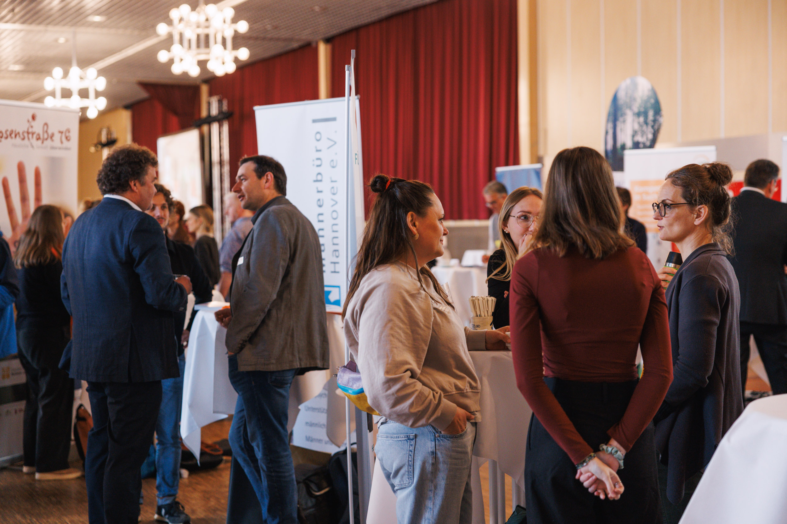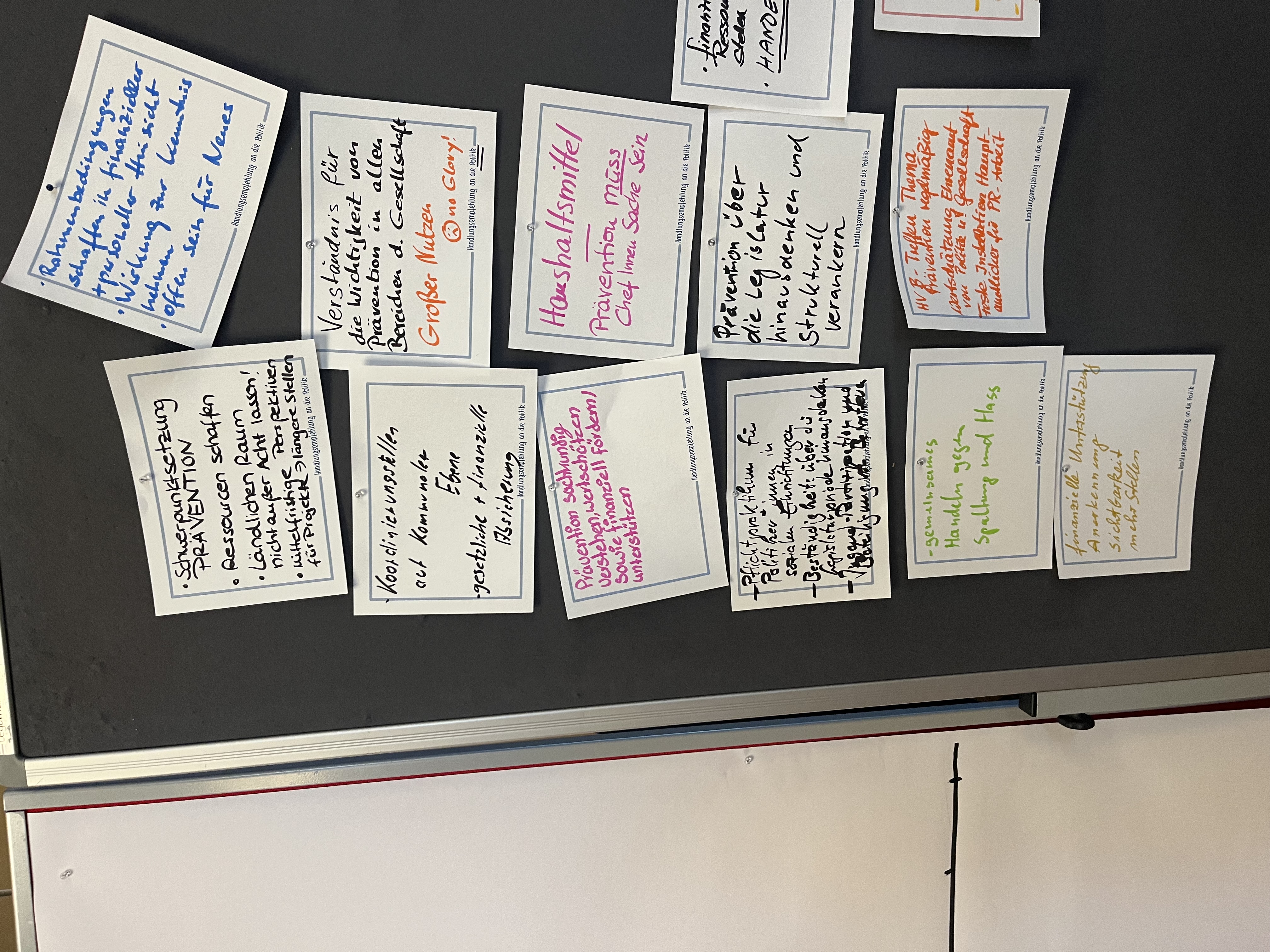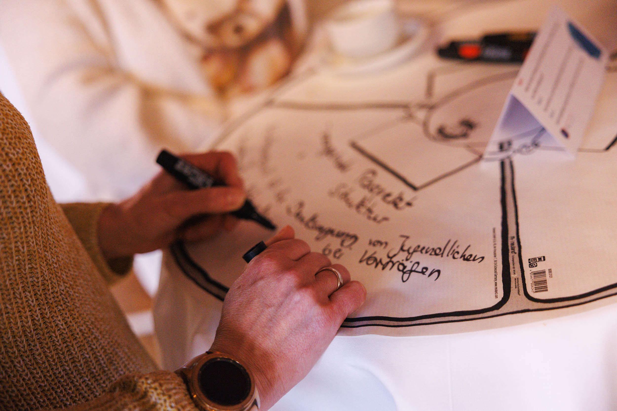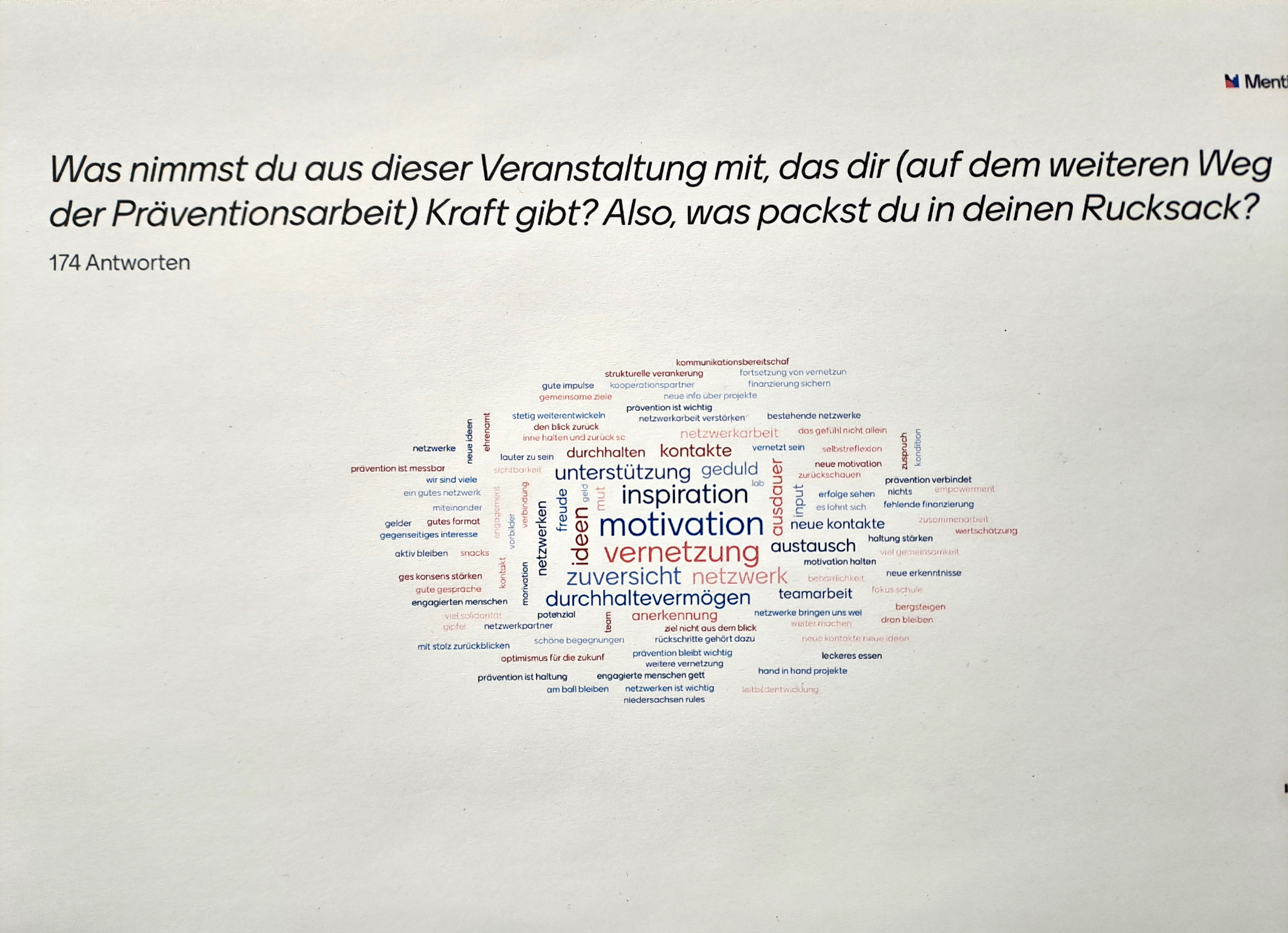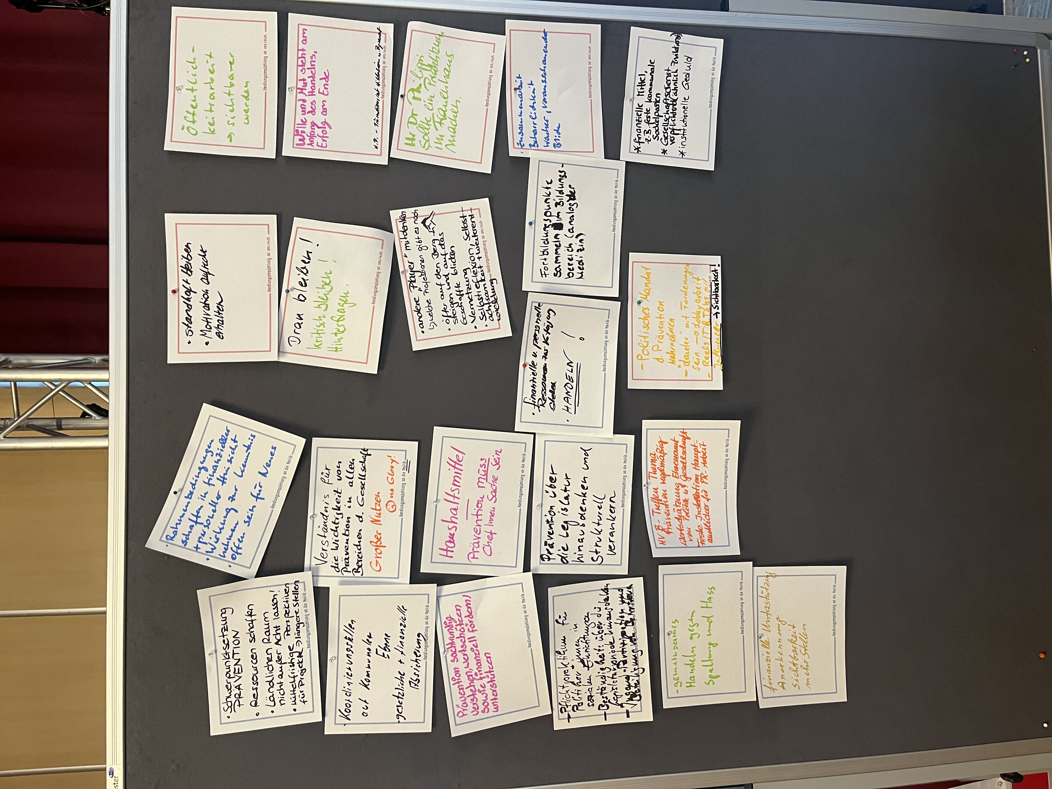 Nach einer Podiumsdiskussion zur Keynote “Was ist ihr persönlicher Mount Everest in der Präventionsarbeit?” und Erfahrungsberichten der Preisträger:innen des Niedersächsischen Präventionspreis, ging es begleitet durch das Improvisationtheater “Die Improkokken” von der Mittagspause über in das World Cafe zum Thema "Prävention in Zukunft". Die Teilnehmenden haben sich hier zu Fragen, Herausforderungen und Chancen der Prävention ausgetauscht und eine Fülle von Empfehlungen an Politik und Praxis erarbeitet.