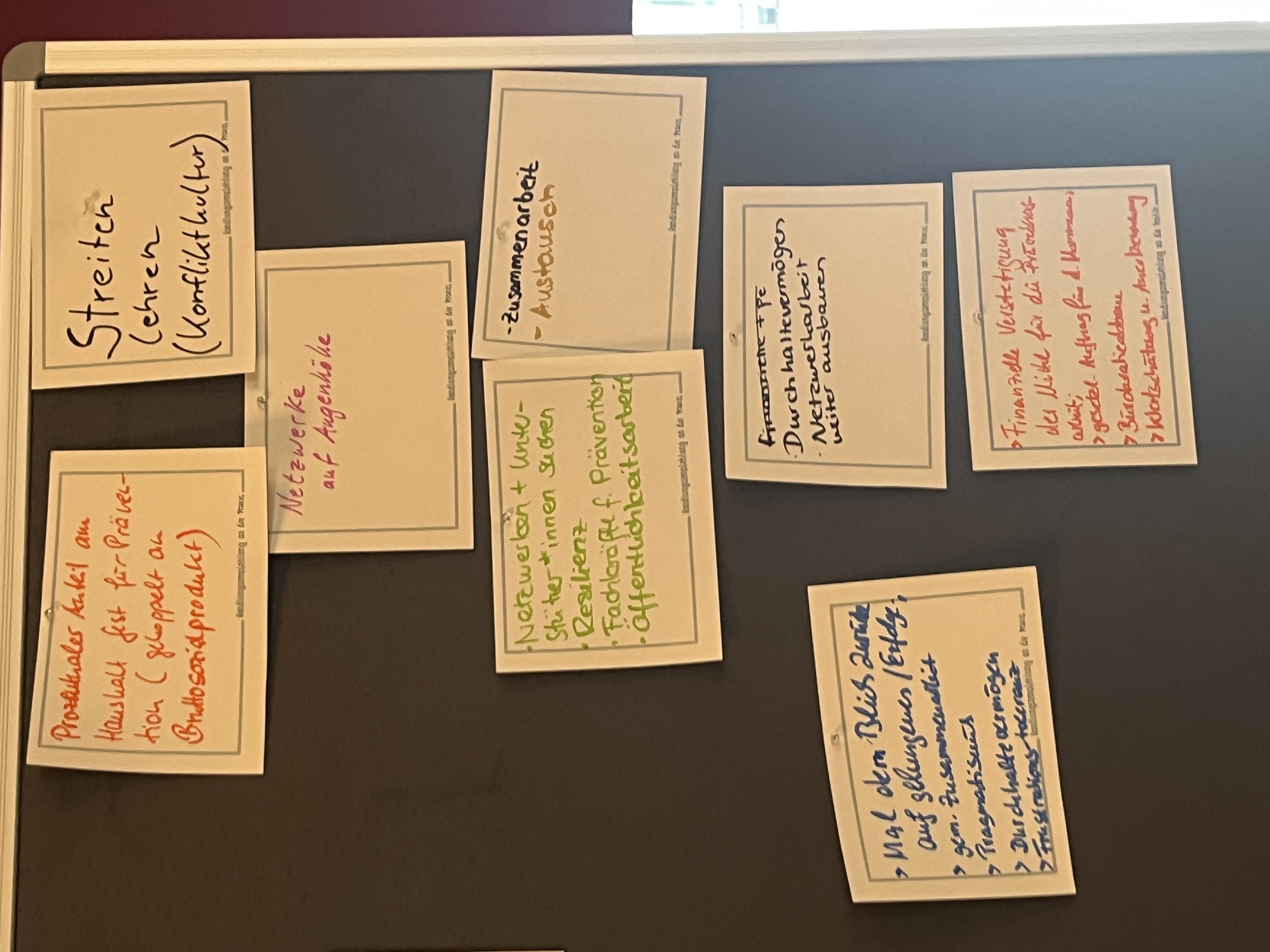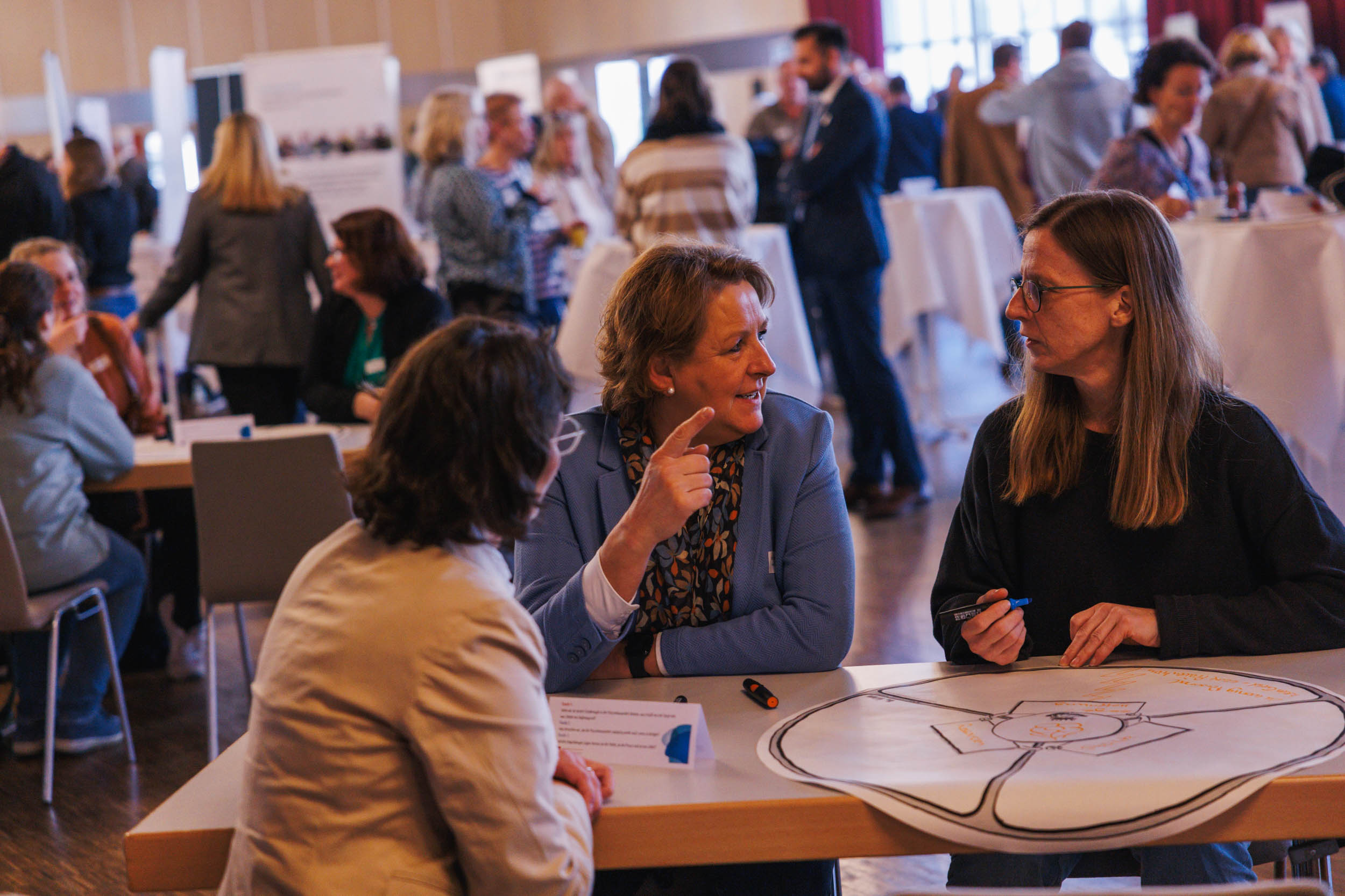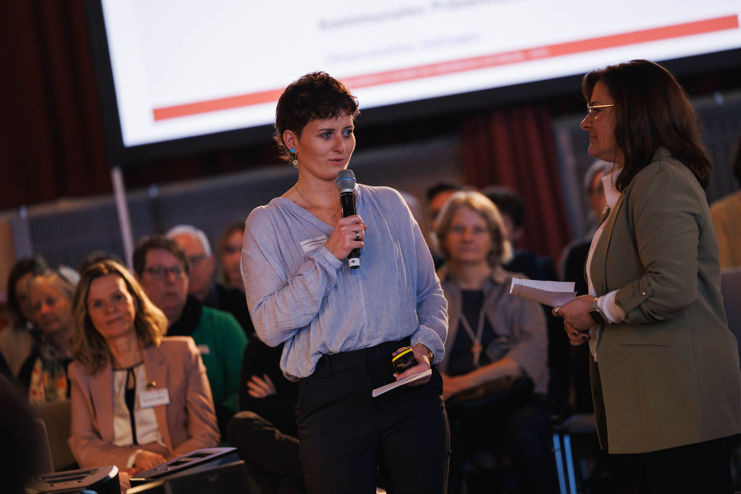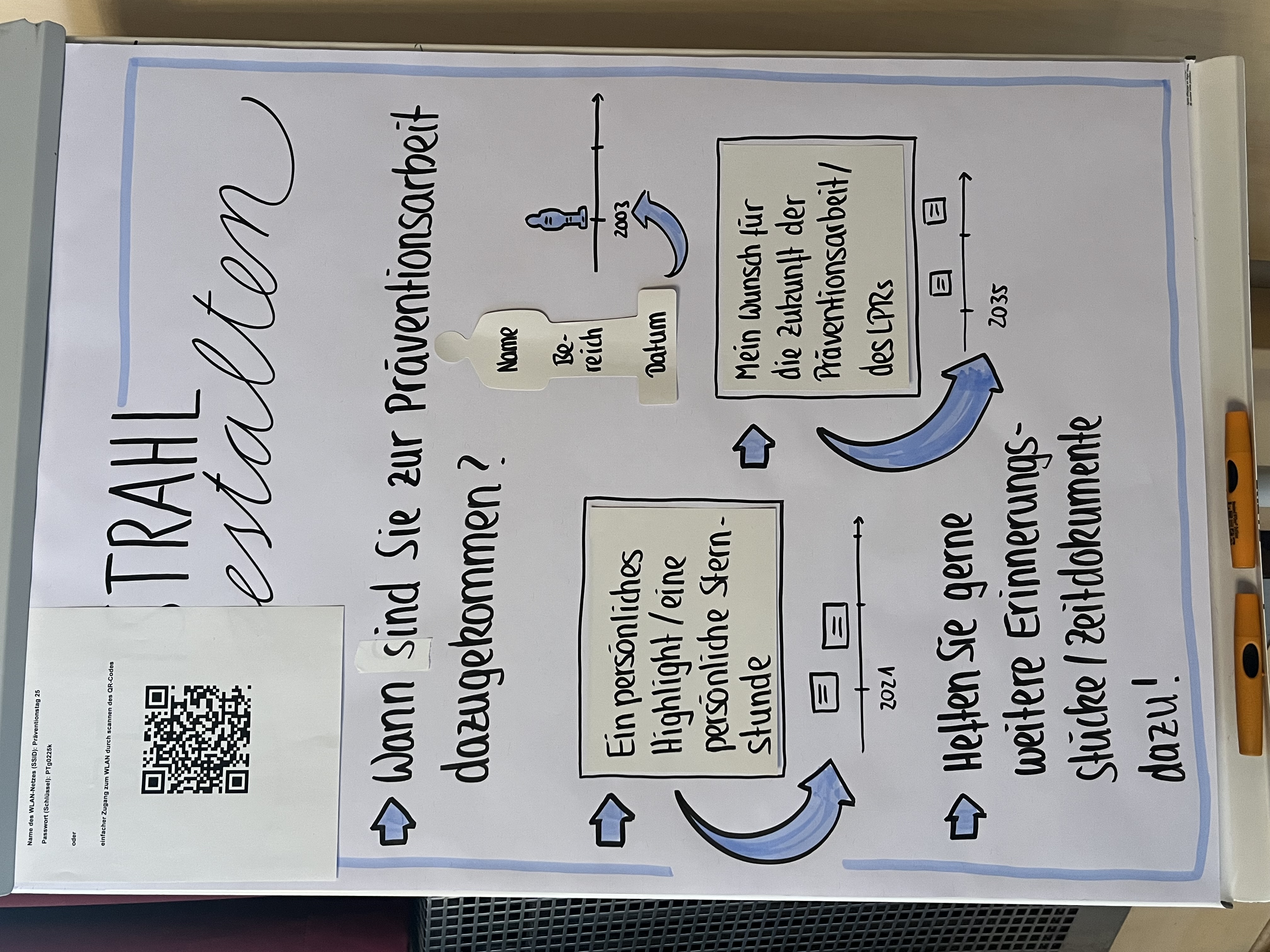 Nach einer Podiumsdiskussion zur Keynote “Was ist ihr persönlicher Mount Everest in der Präventionsarbeit?” und Erfahrungsberichten der Preisträger:innen des Niedersächsischen Präventionspreis, ging es begleitet durch das Improvisationtheater “Die Improkokken” von der Mittagspause über in das World Cafe zum Thema "Prävention in Zukunft". Die Teilnehmenden haben sich hier zu Fragen, Herausforderungen und Chancen der Prävention ausgetauscht und eine Fülle von Empfehlungen an Politik und Praxis erarbeitet.