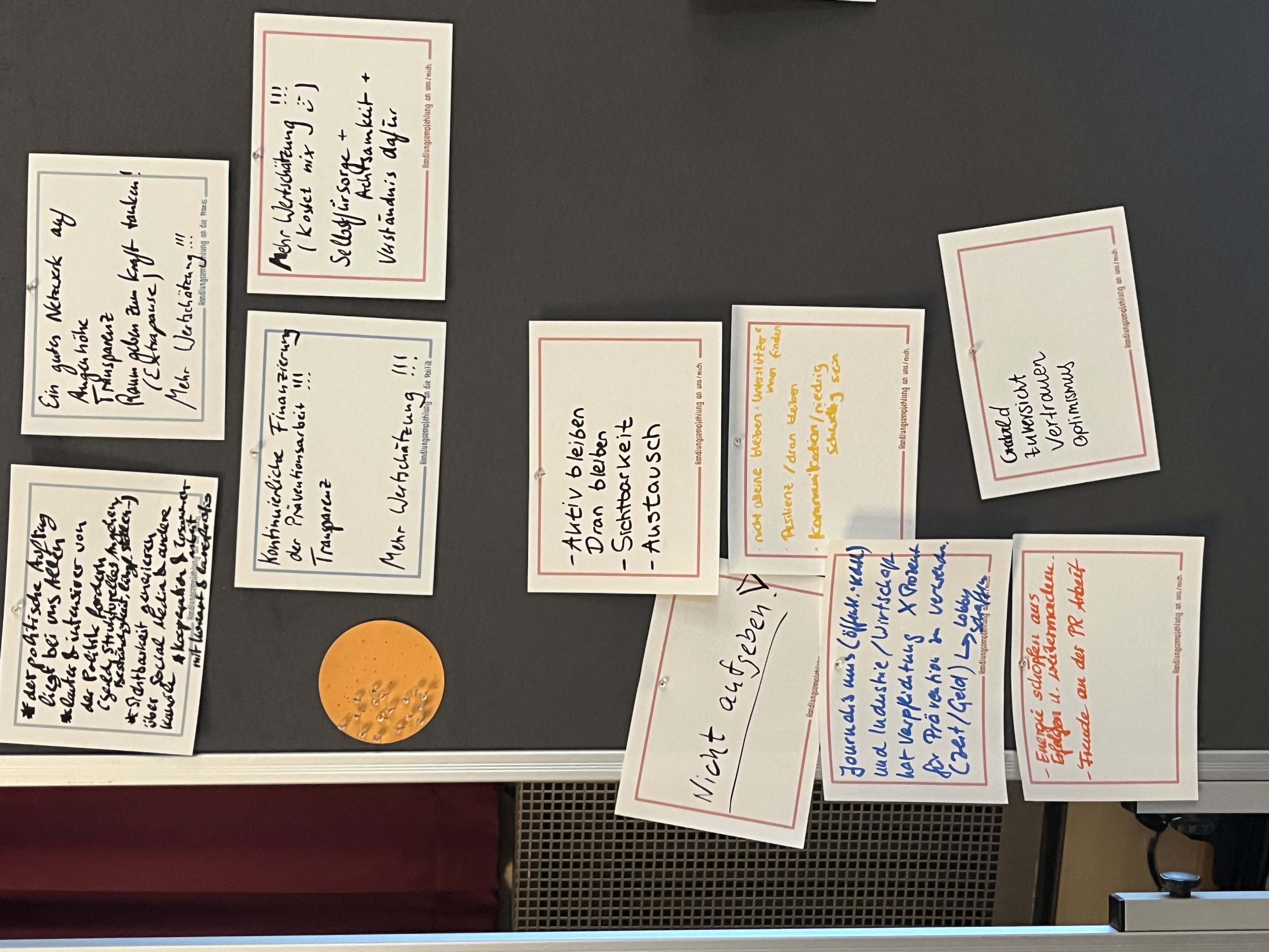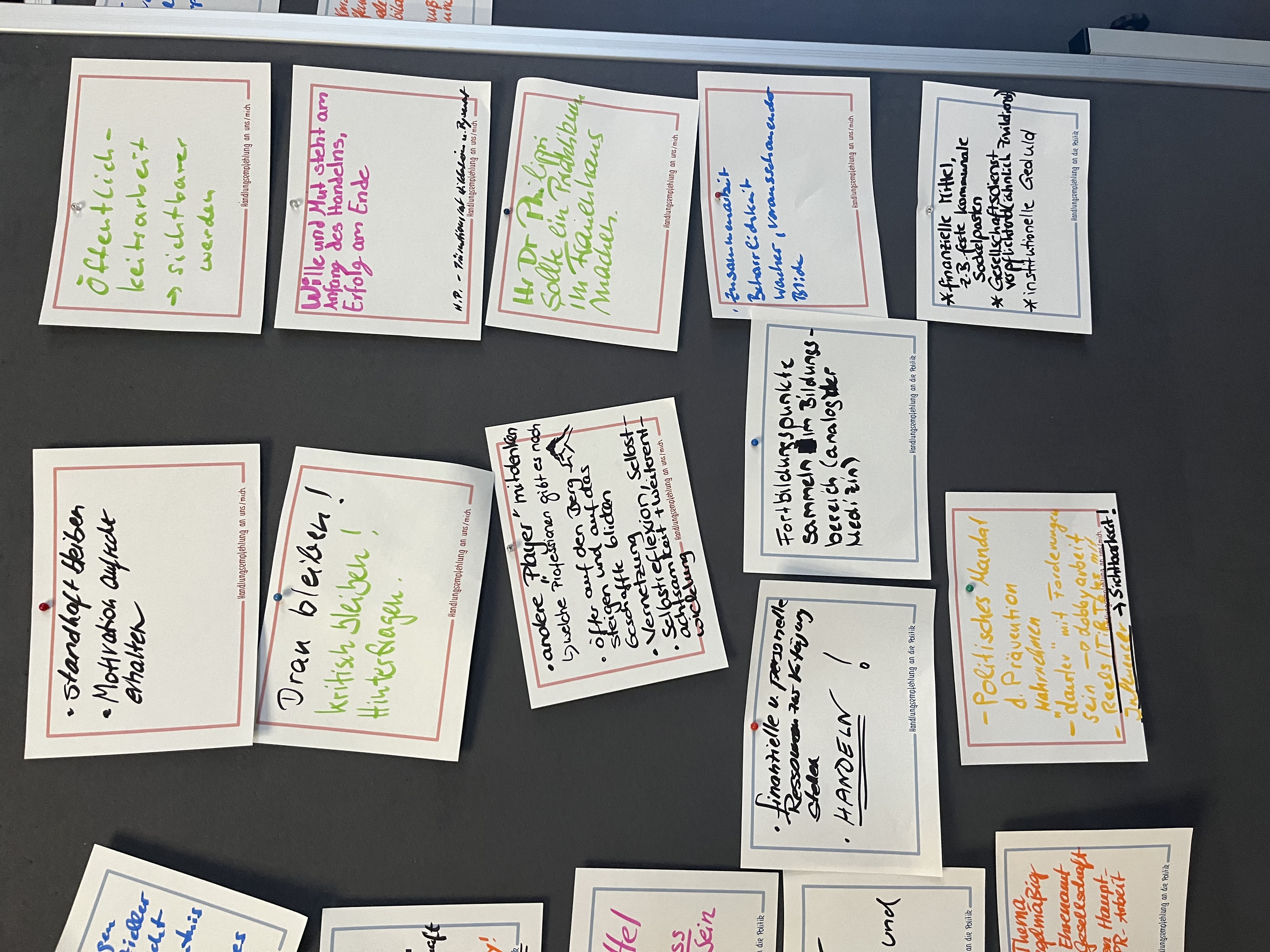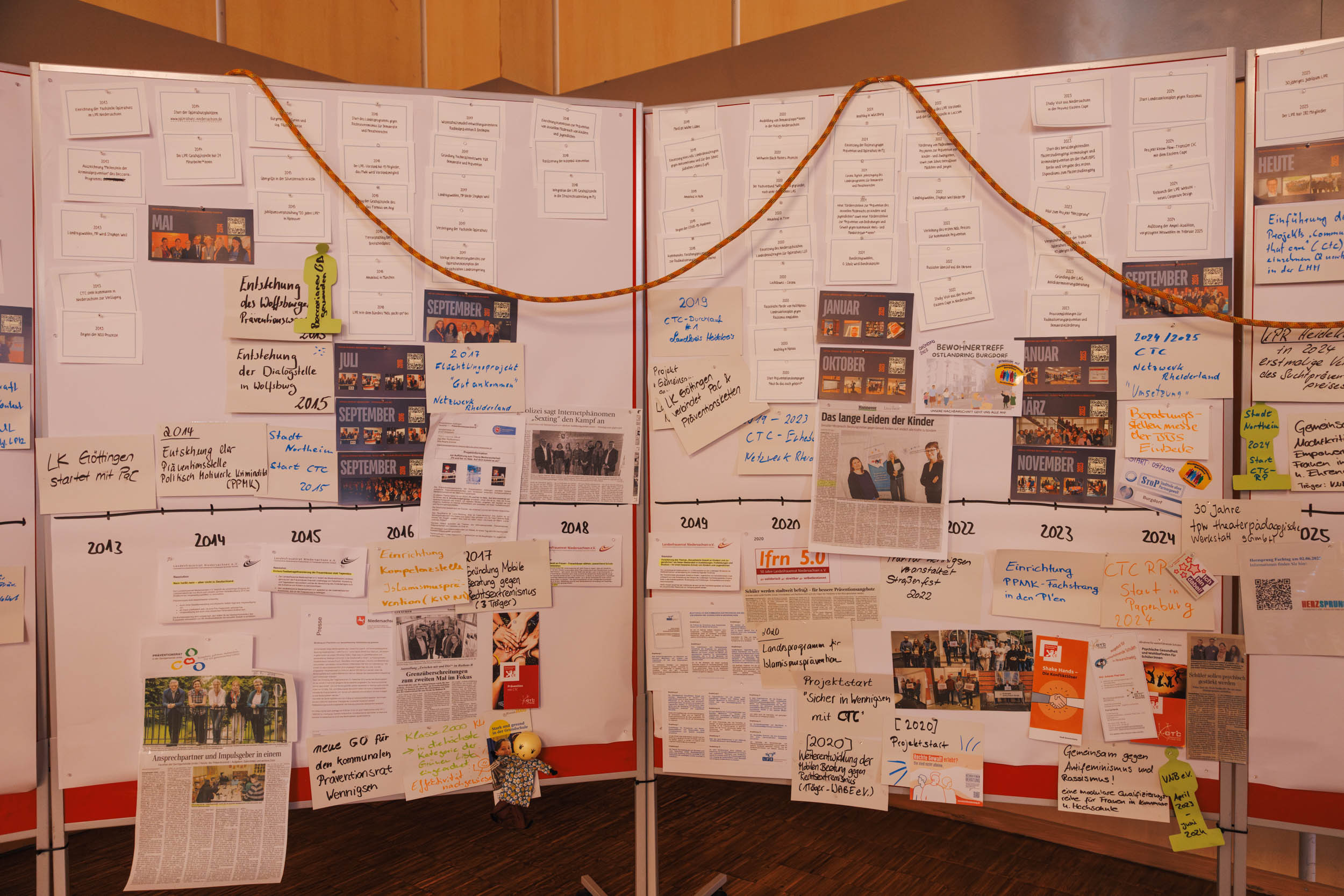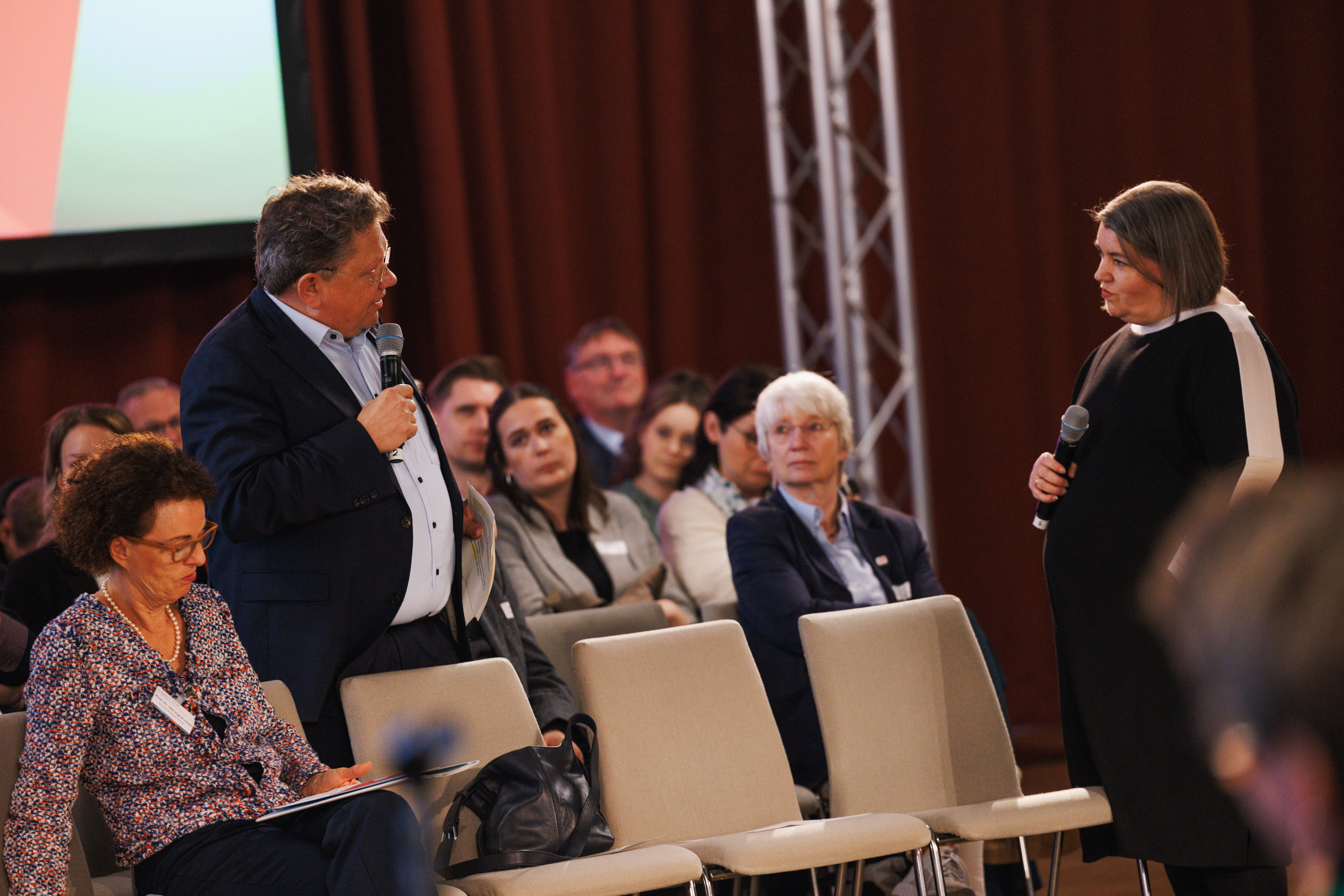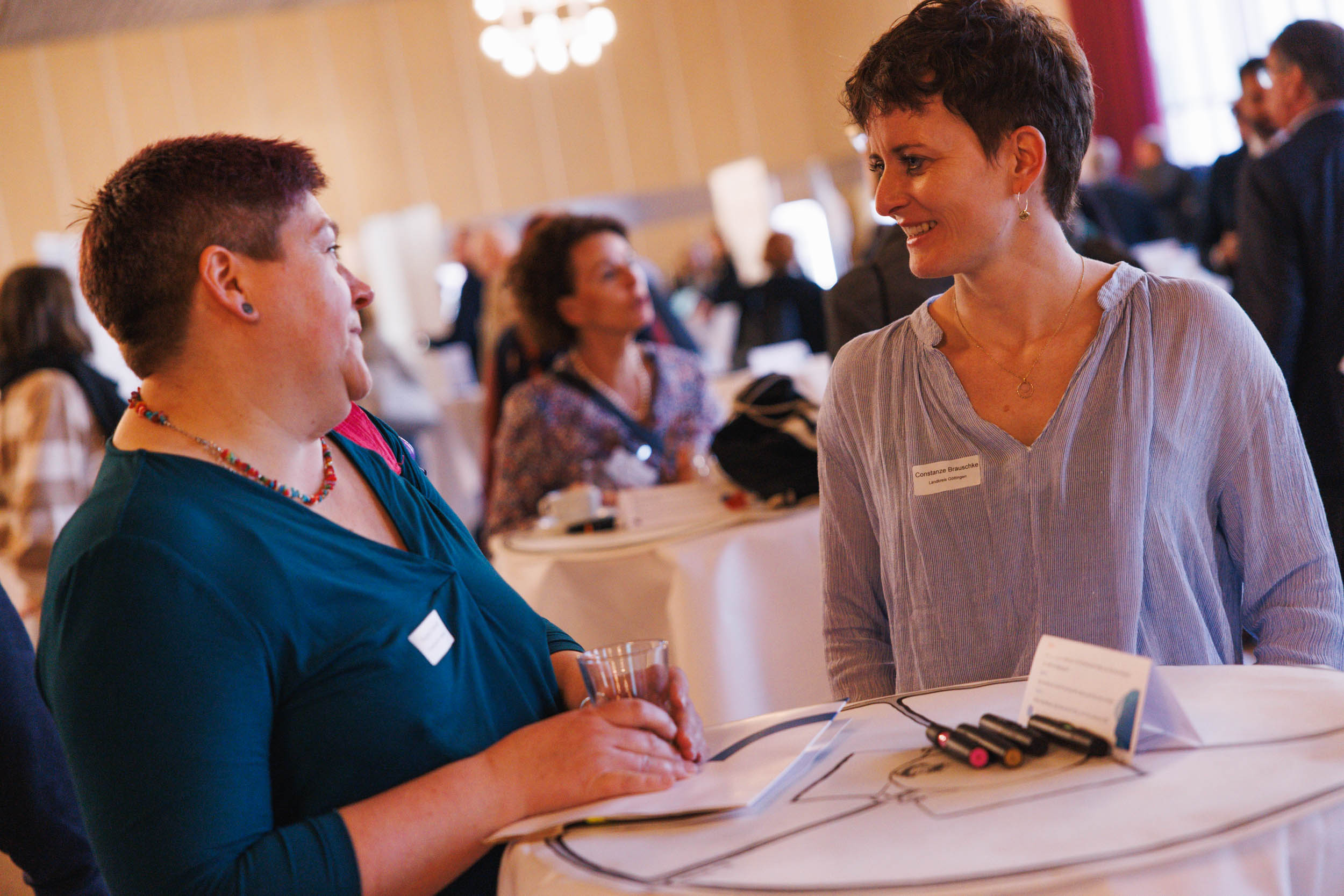 Nach einer Podiumsdiskussion zur Keynote “Was ist ihr persönlicher Mount Everest in der Präventionsarbeit?” und Erfahrungsberichten der Preisträger:innen des Niedersächsischen Präventionspreis, ging es begleitet durch das Improvisationtheater “Die Improkokken” von der Mittagspause über in das World Cafe zum Thema "Prävention in Zukunft". Die Teilnehmenden haben sich hier zu Fragen, Herausforderungen und Chancen der Prävention ausgetauscht und eine Fülle von Empfehlungen an Politik und Praxis erarbeitet.