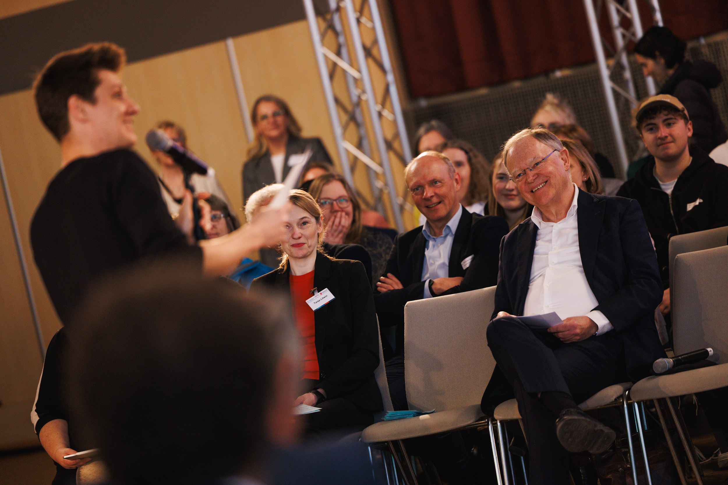 Zu Beginn der Veranstaltung stimmte ein gelungener Poetry Slam des Künstlers Friedrich Herrmann auf die Veranstaltung ein. Im Anschluss betonte Ministerpräsident Stephan Weil in seinem Grußwort die wertvolle Arbeit des LPR: „Der Landespräventionsrat leistet seit nunmehr 30 Jahren einen wichtigen Beitrag dafür, dass sich die Menschen in Niedersachsen sicher fühlen können. Er verhindert Kriminalität, sorgt für Gewaltprävention an Schulen und fördert insbesondere bei jungen Menschen das Verständnis für Demokratie und Menschenrechte, was immer wichtiger wird. Allen Mitgliedern und Unterstützern des Landespräventionsrates gilt mein ganz herzlicher Dank für das Engagement und die wertvolle Arbeit.“