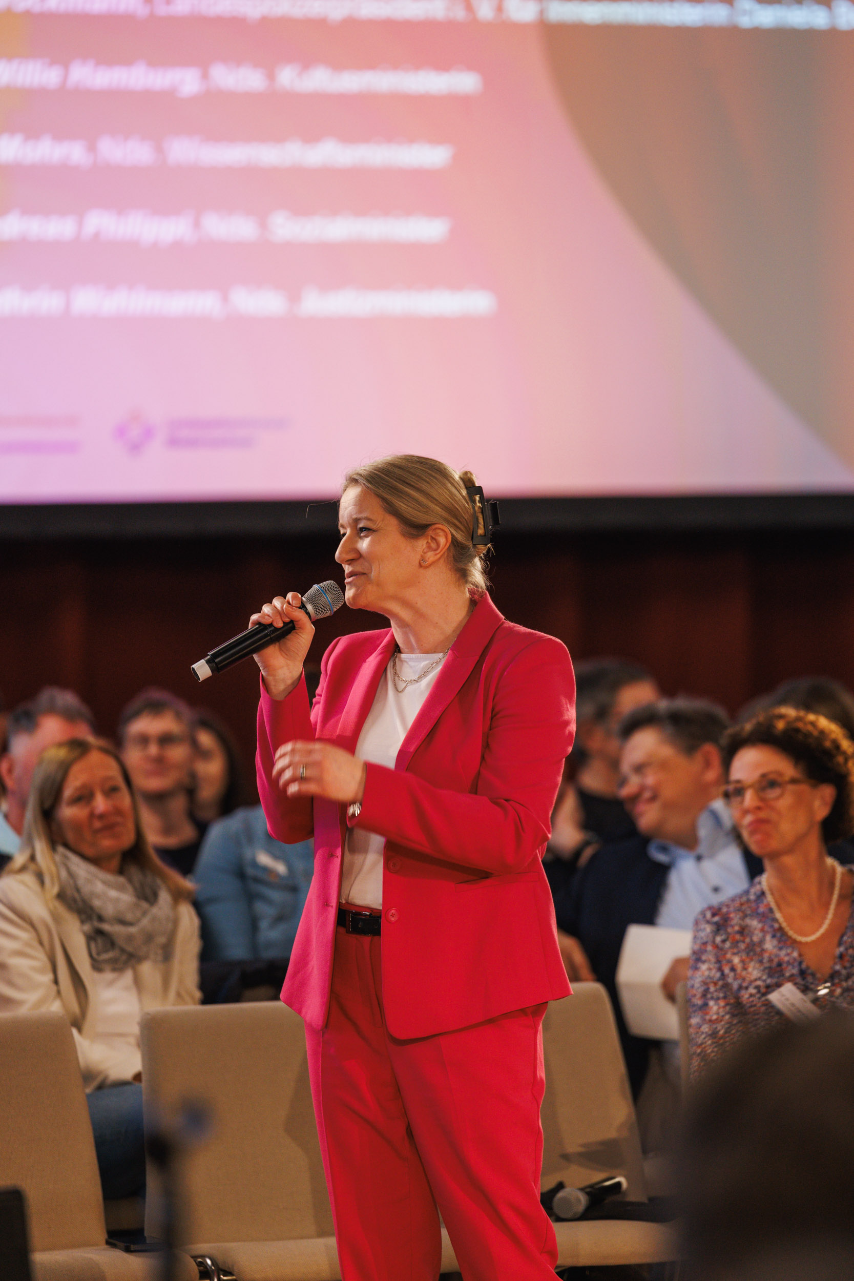 Julia Willie Hamburg, Niedersächsische Kultusministerin, betonte die Arbeit des Präventionsrates auch im schulischen Kontext: „Prävention ist der Schlüssel zu einem sicheren und respektvollen Miteinander. Der Landespräventionsrat leistet hier seit 30 Jahren wertvolle Arbeit - was auch in den Bildungsstätten von enormer Bedeutung ist. Seit einiger Zeit beobachten wir mit Sorge, dass bereits sehr junge Kinder in Schulen durch Gewalt auffallen. Wir haben in Niedersachsen bereits umfangreiche Regelungen zum Umgang mit Gewalt in Schule – im Zentrum steht dabei immer die Prävention. Unser oberstes Ziel ist es, Gewalt gar nicht erst aufkommen zu lassen und ihr keinen Raum zu geben. Um der gesellschaftlichen Entwicklung noch deutlicher zu begegnen, überarbeiten wir derzeit den bisherigen Gewalt- und Präventionserlass umfangreich gemeinsam mit den zuständigen Ministerien.